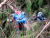 Poté se s Džohnym, podle vzoru Beara Gryllse rozběhneme. Zastaví nás další polom. Tentokrát mnohem větší. Většina stromů je ale prořezána, takže přelézáme jen několik. Skoro na konci doliny čekáme u pramene, který vyvěrá zpod skály. Je pekelně studená, ale my se v potůčku cachtáme.