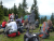 Okolo nás se honí nevyzpytatelné přeháňky. Vždy když sundáme pláštěnky, začne do deseti minut pršet. Po poledni stojíme na vrcholu (1251 m). Není z něj žádný výhled. Všude rostou vysoké stromy.