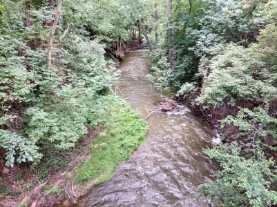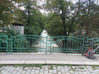PRÁČE: Pod Kozinovým náměstím plujeme nedávno opevněným korytem. Břehy jsou ovšem už přirozeně zarostlé a příroda vypadá jako lesopark.