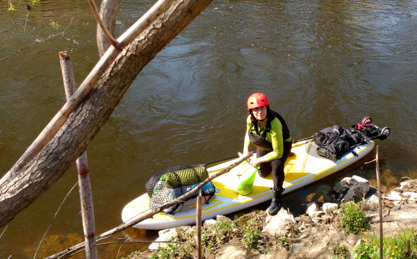 Paddleboardistka na soutoku Smědé a Lužické Nisy.