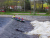 Ve velkých nepravidelných vlnách se prokousáváme dopředu k radešovskému jezu. Je to mírně sklopená deska, vlevo se tvoří válec a vpravo je lomový kámen a železné traverzy. Jez raději přenášíme vpravo. Později zjišťujeme, že se jezdí prostředkem po pravé straně betonové desky tak, aby bylo možné se vyhnout válci vlevo i traverzám vpravo.