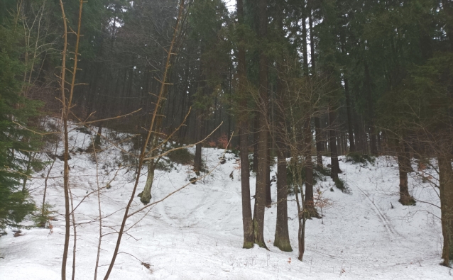 Sníh taje v údolí Klínového potoka mezi vodopádem a Hnědými skálami.