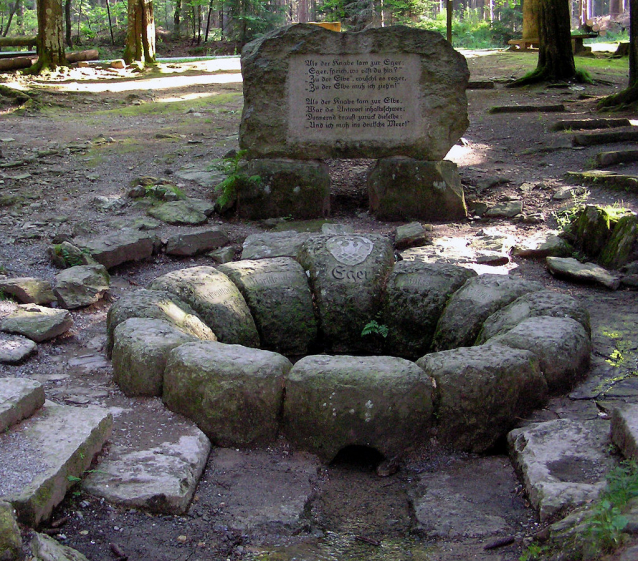 Pramen Ohře v Bavorsku na svahu hory Schneeberg.
