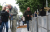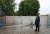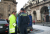 Praha, povodeň 2013. Strážník střeží vstup na Karlův most.