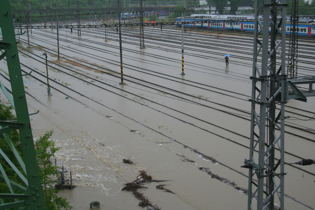 Botič zaplavil odstavné nádraží v Záběhlicích.