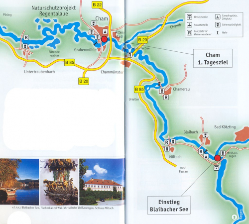 Turistická klasika na otevřených kánoích, mořských či jezerních kajacích se splouvá z Blaibacher See do Regensburgu. Řeka rychle teče, mohutní a občas zalaškuje v peřejích, ale nic opravdu náročného na vodáky nečíhá.