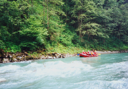Z přehradní nádrže v Griesu je potřeba lodě outem převézt o dva kilometry dál k nádraží v Taxenbachu. Pod ním začíná nejhezčí plavba po Salzachu. Čistá modrá voda proudí mezi velkými kameny. Proud není příliš silný, ale za to se musí neustále kličkovat a hledat nejvhodnější průjezdy a občas i seskočit nějaký ten skalní práh.