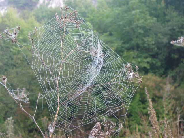 Pavouk plete pavučinu na soutoku Berounky a Kačáku.