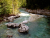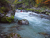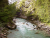 Pár set metrů probojujeme po mělčinách k výtoku z elektrárničky a zase si užíváme. Koryto se sklápí, následuje řada rychlých a dlouhých zatáček s velkými vlnami. Krásné skalnaté údolí okolo ani nemáme čas pořádně skouknout.