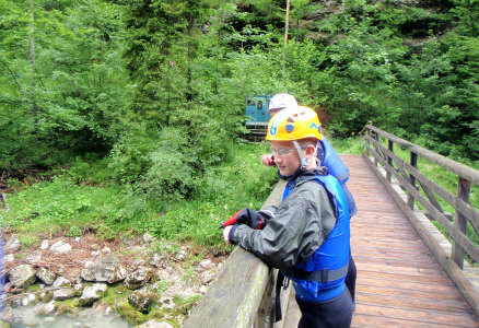 Já jako obvykle projíždím pozadu. Sakra, zase jsem se nechal kvůli přemíře snahy nahnat úplně zleva úplně doprava. Ondra se tak soustředí na rozhodující úsek, že ho proplave hlavou dolů, protože se cvakne na kameni nad soutěskou. Hanka a Mates jedou elegantně. Podobné skóre má i skupina Rakušanů. Házečky jsou v permanenci.