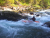 Pod mostem chvíli mudrujeme a volíme průjezd úplně zprava. Je tam skalní koryto, ve kterém není radno moc pádlovat. Proud si nás sám snese do laguny pod skalním stupněm. Přesto raději průjezd jistíme házečkou.