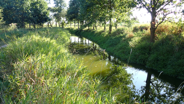 Levostranný umělý kanál na Lužnici v Třeboňské pánvi.